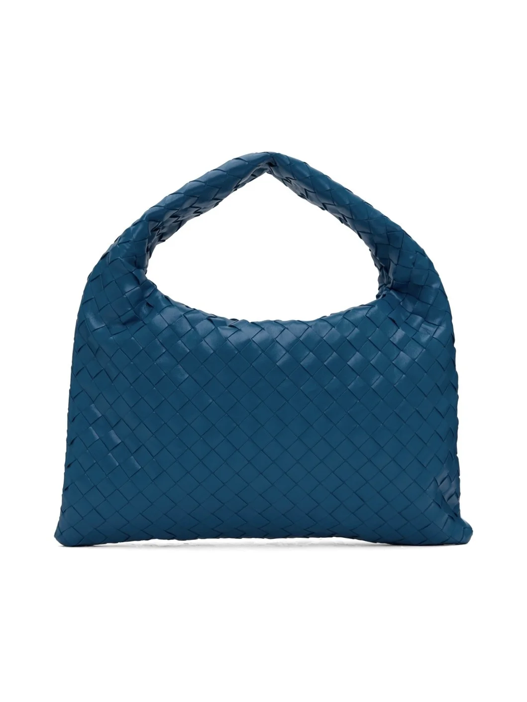 Intrecciato-woven grained leather shoulder bag in navy. · Integrated carry handle · Magnetic foldover flap · Zip pocket at interior · Buffed leather lining · H10.5" x W15.5" · Total height: H13.25" Supplier color: Deep pacific Leather. Made in Italy 241798F048004