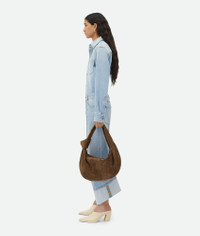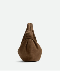 Shoulder bag with soft rounded shape and signature knot crafted from embossed-effect Product details • Small corduroy suede shoulder bag • Single interior zip pocket • Zipper closure Material: 100% Calfskin • Lining: Lambskin • Color: Jacobean • Hardware: Gold finish • Height: 48 cm | 18.9" • Width: 40 cm | 15.7" • Depth: 16 cm | 6.3" • Handle drop: 30 cm | 11.8" Made in: Italy