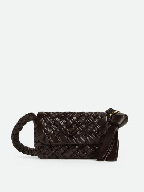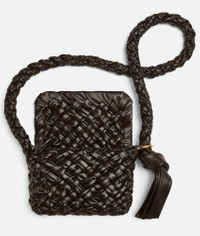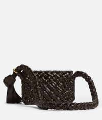 Shoulder bag in soft foulard Intreccio leather with sliding shoulder strap, metallic Product Details - Small foulard Intreccio leather cross-body bag - Sliding shoulder strap with metallic ring and knotted end - Single interior zippered pocket - Magnetic closure - Material: calfskin - Lining: Unlined - Color: Fondant - Hardware: Brass finish - Height: 16 cm | 6.3" - Width: 25 cm | 9.8” - Depth: 5 cm | 2” - Strap drop: 29 cm | 11.4” - Made in: Italy - Product code: 815258V40T02190