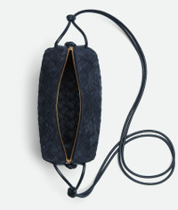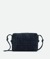 Cross-body bag made from embossed-effect suede reminiscent of corduroy using Intrecciato Product Details - Small Intrecciato corduroy suede cross-body bag - Single compartment - Zipper closure - Material: Calfskin - Lining: Intrecciato Bonded Calfskin - Color: Space - Hardware: Gold finish - Height: 15.5 cm | 6.1" - Width: 22 cm | 8.6" - Depth: 9 cm | 3.5" - Strap drop: 55 cm | 21.6" - Made in: Italy - Product code: 723548V3B018837