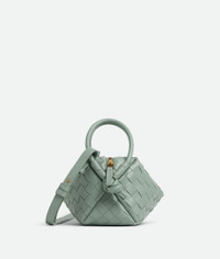 Cross-body bag in Intrecciato leather with double handles and detachable strap. Product Details - Small Intrecciato leather cross-body bag with double handles and detachable strap - Single compartment - Detachable interior split ring with leather strap - Zip closure - Material: calfskin - Lining: Canvas - Color: New Sauge - Hardware: Brass finish - Height: 12 cm | 4.7" - Width: 19 cm | 7.5" - Depth: 9 cm | 3.5" - Strap drop: 46 cm | 18.1" - Made in: Italy - Product code: 796615V2HL13401