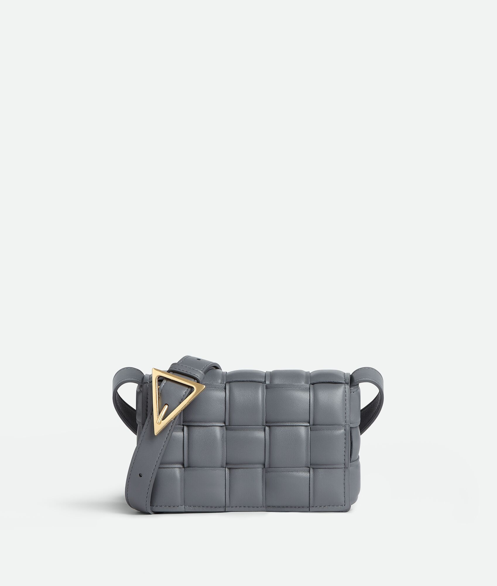 • Small padded intreccio leather crossbody bag • Single interior zip pocket • Metal closure Material: 100% Lambskin • Lining: Bonded lambskin • Color: Thunder • Hardware: Gold finish • Height: 12 cm | 4.7" • Width: 19 cm | 7.5" • Depth: 5 cm | 2" • Strap drop: 51 cm | 20.1" Made in: Italy