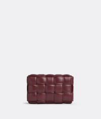 • Small padded intreccio leather cross-body bag • Single interior zipped pocket • Metal closure Material: 100% Lambskin • Lining: Bonded lambskin • Color: Barolo • Hardware: Gold finish • Height: 12 cm | 4.7" • Width: 19 cm | 7.5" • Depth: 5 cm | 2" • Strap drop: 51 cm | 20.1" Made in: Italy