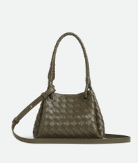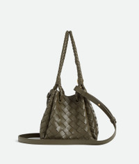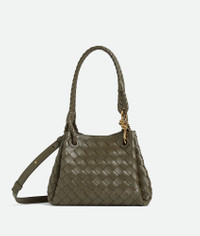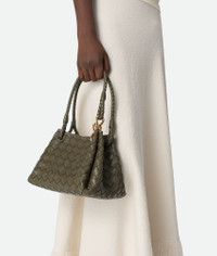 Product Details - Small Intrecciato leather shoulder bag with detachable cross-body strap - One main compartment - Magnetic tab closure - Lining: Lambskin bonded Intrecciato - Color: Cypress - Hardware: Brass finish - Height: 16.5 cm | 6.5" - Width: 20 cm | 7.9" - Depth: 17 cm | 6.7" - Handle drop: 20 cm | 7.9" - Strap drop: 55 cm | 21.7" - Made in: Italy - Product code: 796569VCPPT3230