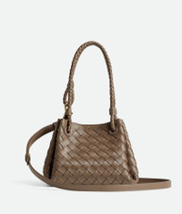 Product Details - Small Intrecciato leather shoulder bag with detachable cross-body strap - One main compartment - Magnetic tab closure - Lining: Lambskin bonded Intrecciato - Color: Pinecone - Hardware: Brass finish - Made in: Italy - Product code: 796569VCPPT2360 Material - Material: Lambskin Size & Fit - Height: 16.5 cm (6.5") - Width: 20 cm (7.9") - Depth: 17 cm (6.7") - Handle drop: 20 cm (7.9") - Strap drop: 55 cm (21.7")