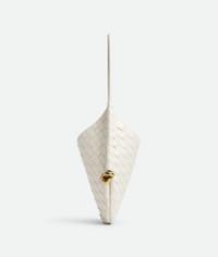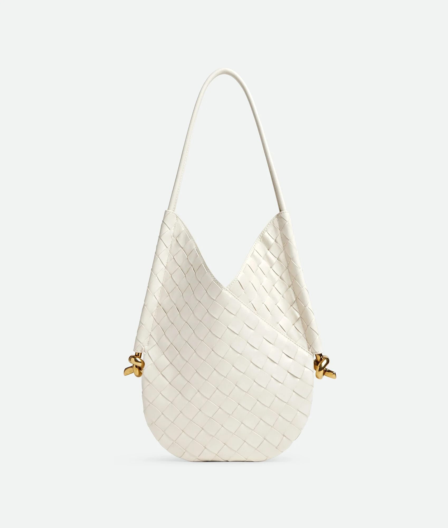 Shoulder bag meticulously realised with Intrecciato craftsmanship in supple lambskin Product Details - Small Intrecciato leather shoulder bag - Single detachable interior zippered pocket - Leather string closure - Material: Lambskin - Lining: Bonded Suede - Color: White - Hardware: Brass finish - Height: 30 cm | 11.8" - Width: 26 cm | 10.2" - Depth: 2 cm | 0.8" - Handle drop: 26 cm | 10.2" - Made in: Italy - Product code: 740898VCPP19092