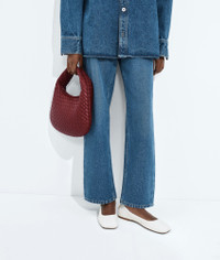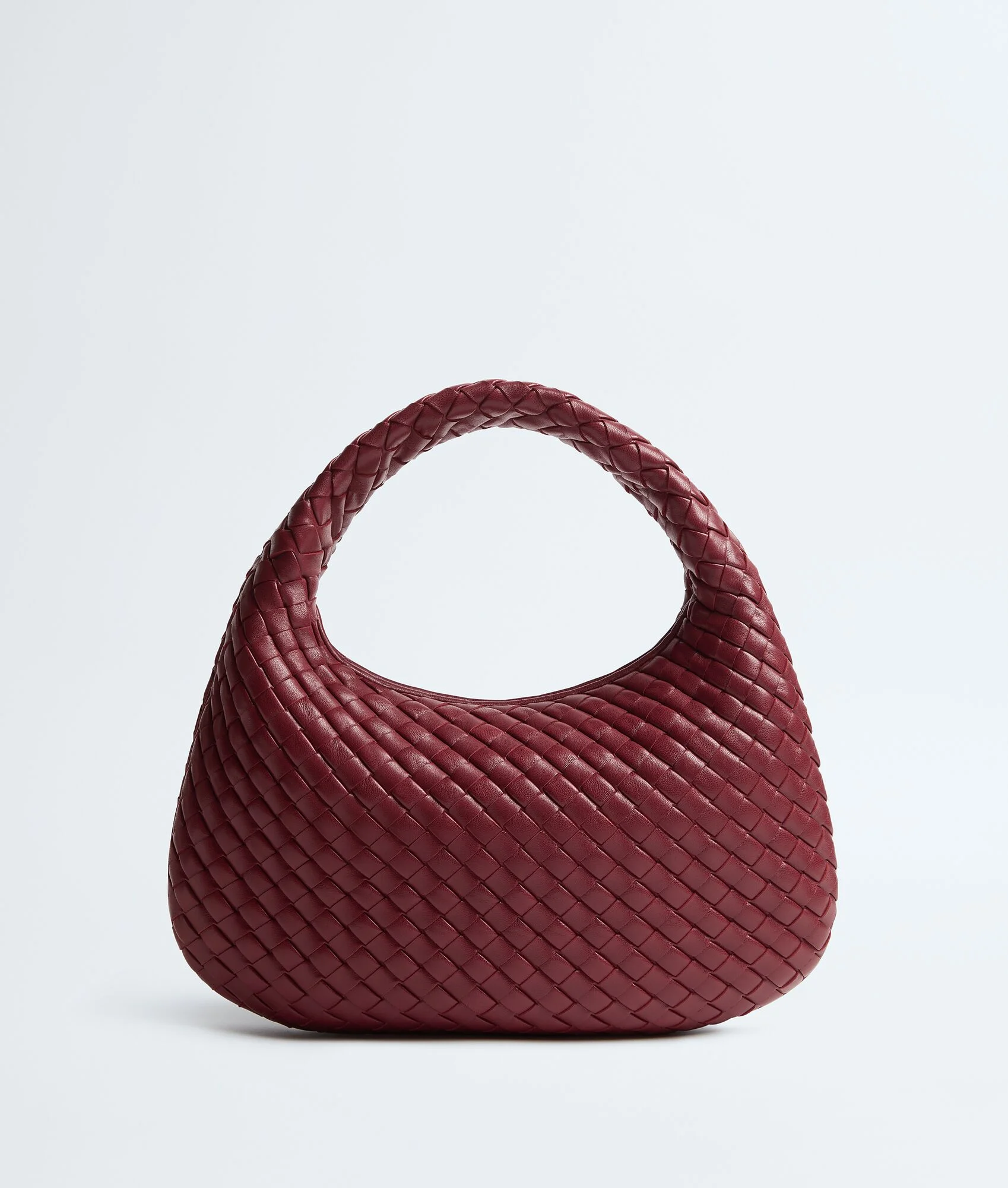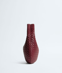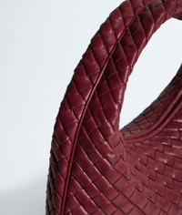 Product Details - Small padded Intrecciato supple leather shoulder bag - One main compartment - Zip closure - Lining: Suede - Colour: Lava red - Hardware: Brass finish - Made in: Italy - Product code: 873188V66V06595 Material - Material: lambskin Size & Fit - Height: 21 cm | 8.3" - Width: 35 cm | 13.8" - Depth: 5 cm | 2" - Handle drop: 14 cm | 5.5"