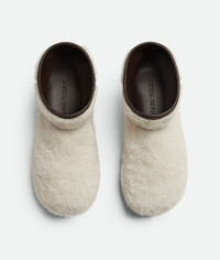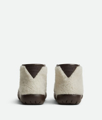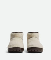 Mini ankle boot realised in shearling with ultra lightweight rubber outsole. Product Details - Shearling mini ankle boot - Material: Shearling, nappa - Lining: Lambskin - Color: Popcorn/Fondant - Rubber outsole - Flatform: 3.5 cm | 1.4” - Made in: Italy - Product code: 817579V4VB28932