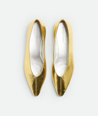 Ballerina with supple construction in reflective goatskin. Product Details - Reflective leather ballerina - Material: Goatskin - Lining: Laminated lambskin - Color: Gold - Rubber injected leather outsole - Made in: Italy - Product code: 827545V5FO08265
