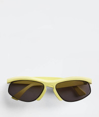 • Acetate sporty oval sunglasses • Injected wavy top bar Material: 50% Acetate, 50% Metal • Color: Yellow/Grey Made in: japan