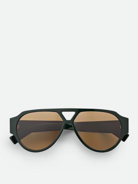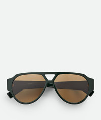 Aviator sunglasses made with Eastman Acetate Renew, an acetate with 27% recycled Product Details - Lenses made from CR39 - BV1318S 003 - Material: Eastman Acetate Renew - Color: Green/Brown - Made in: Italy - Product code: 810164V2Q303309