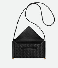 Intrecciato calfskin leather phone pouch with signature knot details. Product Details - One main compartment, one additional inside pocket - Flap magnetic closure - Material: calfskin - Lining: Calfskin - Color: Black - Hardware: Muse Brass finish - Height: 12 cm | 16.9" - Width: 21 cm | 16.9" - Depth: 2 cm | 0.2” - Made in: Italy - Product code: 805975V4R421019