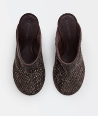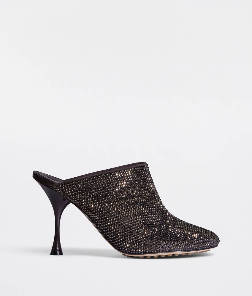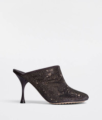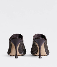 • Rhinestone-embellished suede mules Material: 50% Goatskin 50% Glass • Lining: Lambskin • Color: Fondant • Rubber-injected leather outsole • Heel: 9 cm | 3.5" Made in: italy