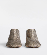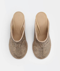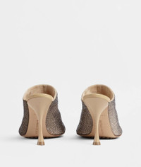 • Rhinestone-embellished suede mules Material: 50% Goatskin 50% Glass • Lining: Lambskin • Color: Cane Sugar • Rubber-injected leather outsole • Heel: 9 cm | 3.5" Made in: italy