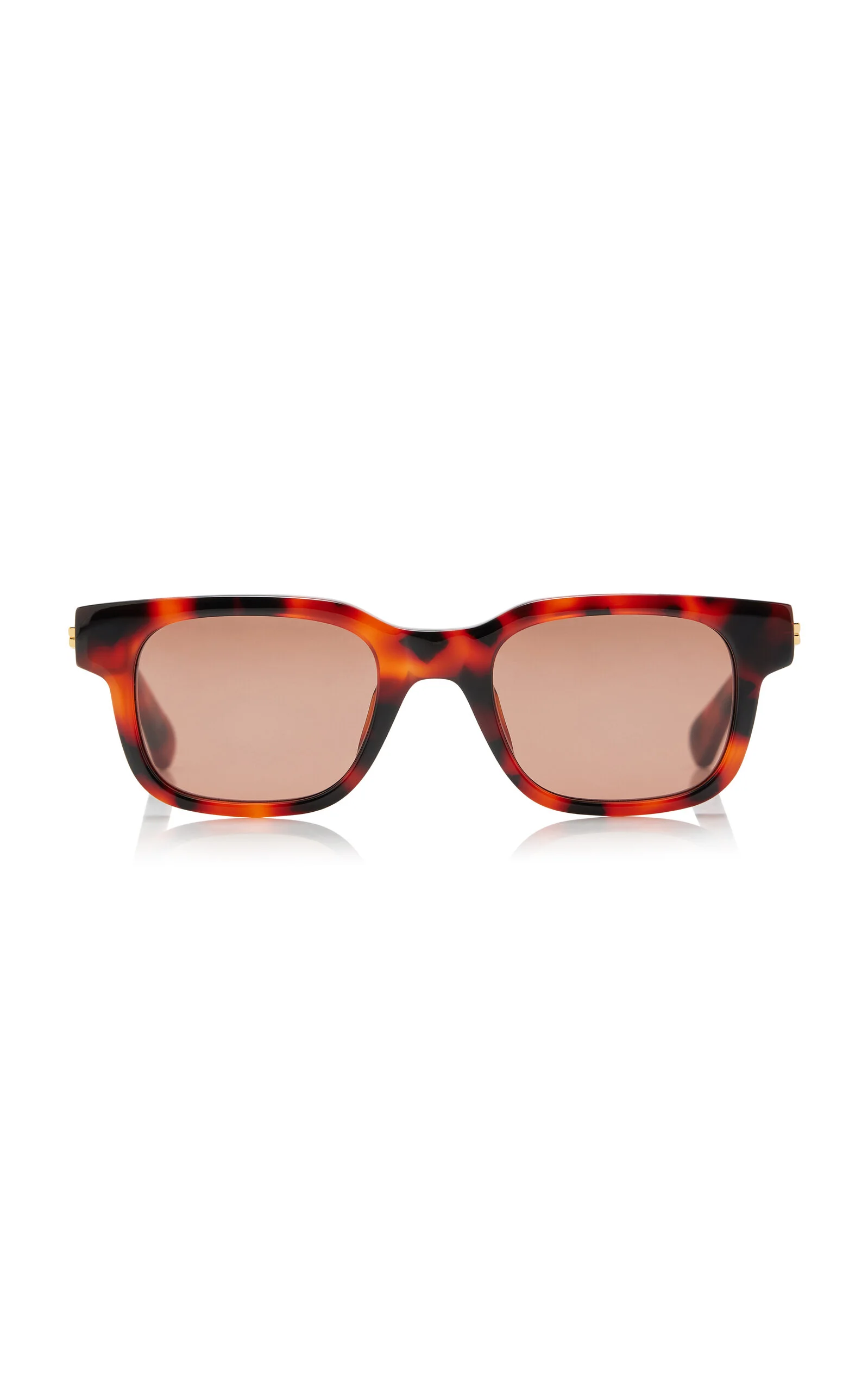 Bottega Veneta's eyewear collection reimagines iconic silhouettes in bold new volumes. These sunglasses have square frames made from tortoiseshell acetate with red lenses and the label's signature ribbon hardware at the temples. PRODUCT DETAILS - Composition: acetate - Designer color: Havana - 100% UVA/UVB protection - Made in Japan
