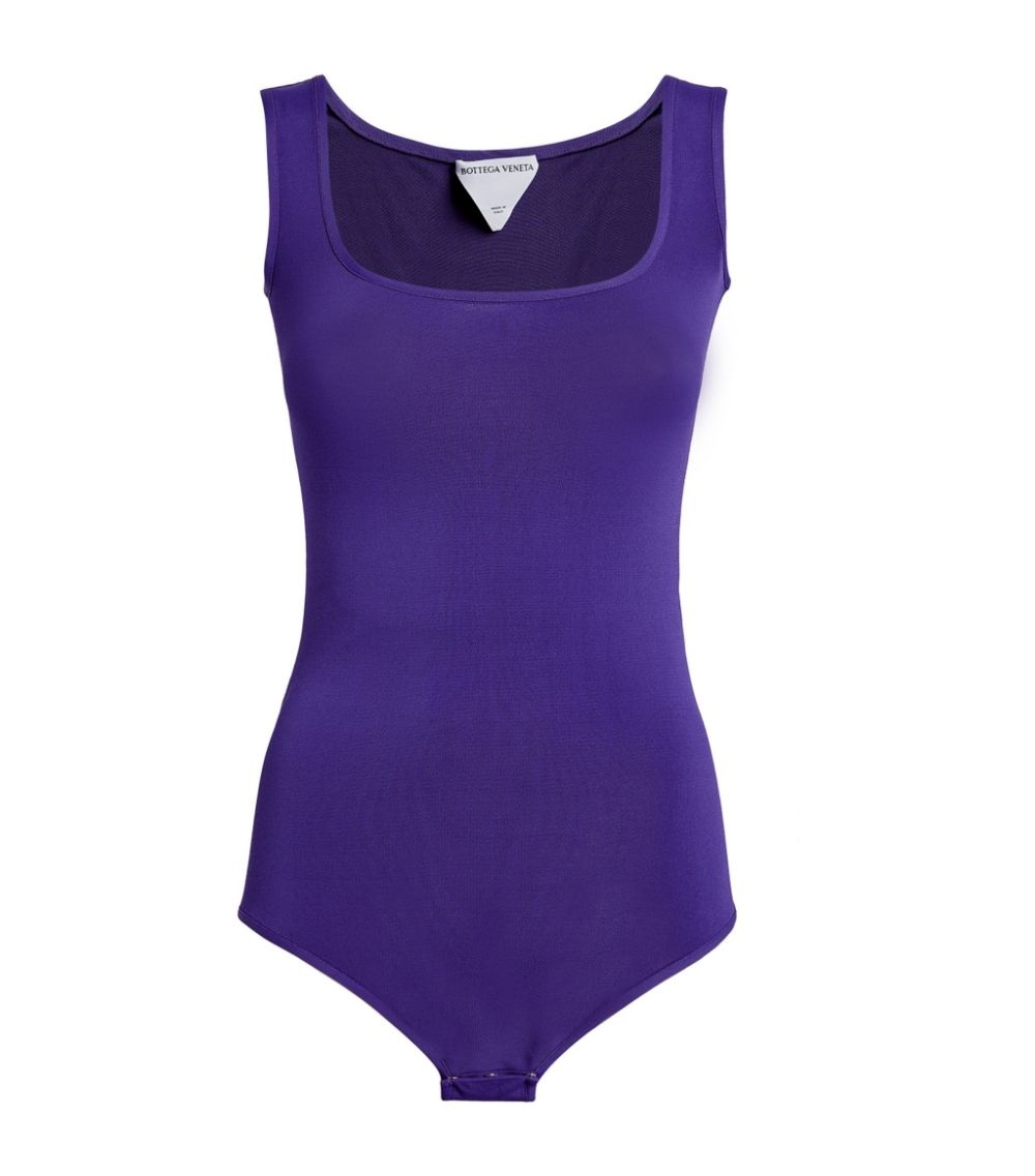 A square-neck staple for all your layering needs, this bodysuit from Bottega Veneta is the perfect foundational piece for your next edit. Made in a striking purple hue, it showcases the label’s ability to balance impeccable craftsmanship with an eye-catching aesthetic.How to wear Harrods: Style with jeans, a denim jacket, mules and a clutch bag. COMPOSITION - OUTER:85% viscose - OUTER:12% Polyamide - OUTER:3% Elastane DETAILS - Model is 178cm, a UK 8 and wears a size XS - Dry clean - Sleeveless - Square neckline