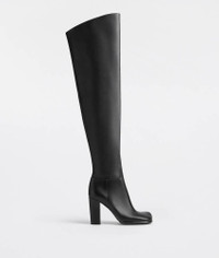• Leather over-the-knee boots Material: 100% Calfskin • Lining: Lambskin • Color: Black • Lugged rubber outsole • Heel: 9 cm | 3.5" Made in: italy