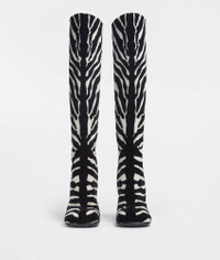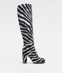• Tufted high boots Material: 100% Polyester • Lining: Lambskin • Color: White/Zebra • Lugged rubber outsole • Heel: 9 cm | 3.5 " Made in: italy