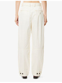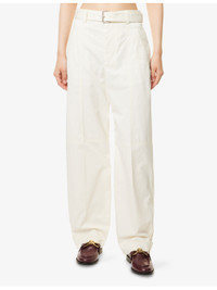 PRODUCT DETAILS - Bottega Veneta cotton trousers - 100% cotton - Button, hook-and-eye and zip-fly fastening - Regular fit, mid-rise, straight leg, structured waistband with belt loops, belt at waist, angled slip pockets at front, panelled construction - Dry clean - Made in Italy - True to size - Size UK 8: rise 14in / 36cm, inside leg 30in / 76cm, leg opening 18in / 46cm - Model is 5ft 10in/1.78m and wears a size UK 8 - Lightweight, non-stretch Ref: R04462032