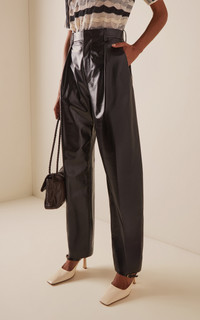 Pleated Leather Straight-Leg Pants black