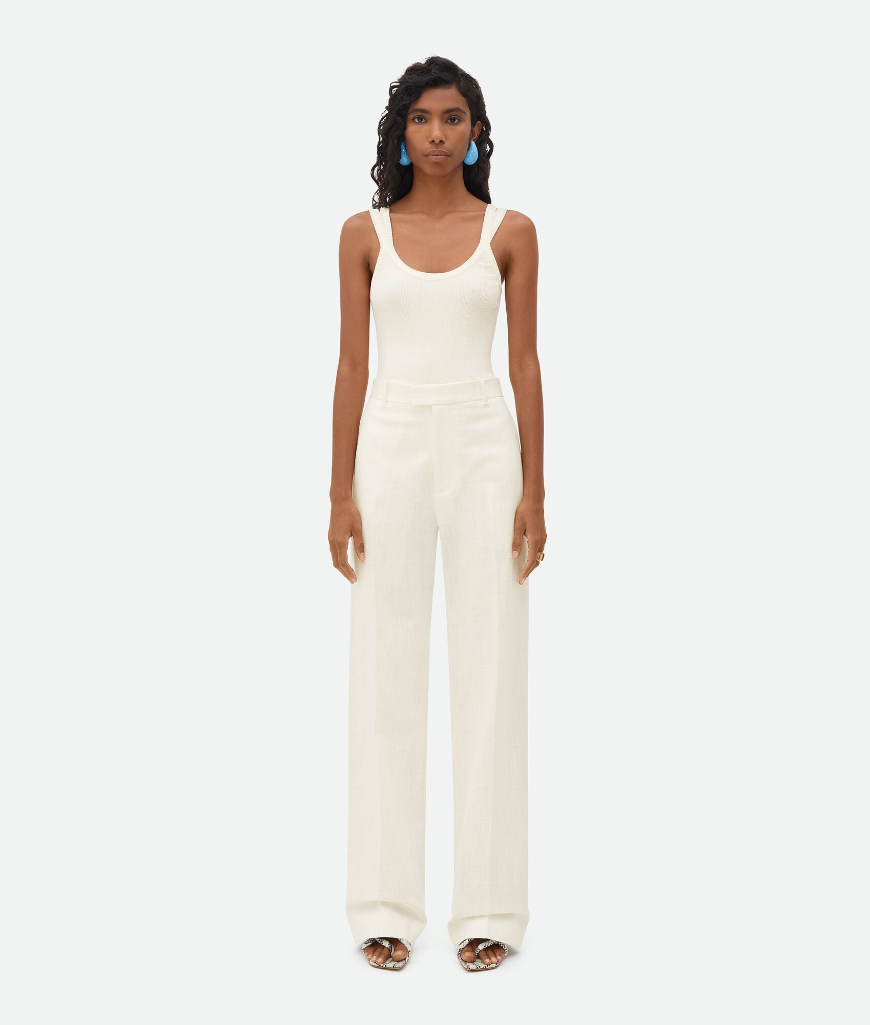 • Textured cotton pants • Zipper, button, and hook closure • Straight leg Material: 100% Cotton • Color: Chalk Made in: Italy