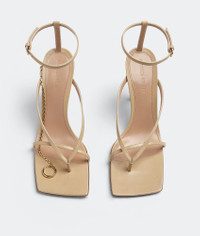 • Leather sandals • Detachable chain with toe ring embellishment Material: 100% Lambskin • Lining: Lambskin • Color: Cane Sugar • Hardware: Gold finish • Rubber-injected leather outsole Heel: 9 cm I 3.5" Made in: Italy