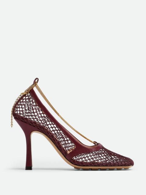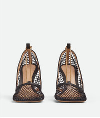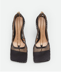 Mesh and leather pumps. Product Details - Mesh and leather pumps - Chain embellishment - Material: Calf, Polyamide - Unlined - Color: Black - Hardware: Gold finish - Rubber-injected leather outsole - Flatform: 9 cm | 3.5" - Made in: Italy - Product code: 578321VBPS11058