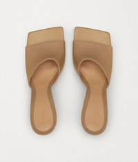 Mules with an elongated square sole • Exceptionally supple nappa leather • Square sole designed to extend beyond the foot • Heel height: 9 cm | 3.5” • Rubber-injected leather sole for comfort and stability • New for Pre Fall 2019, which focuses on an elevated reality of dressing DETAILS Composition: 100% Lambskin Color: Cipria Heel Height: 9 cm | 3.5” Made in Italy