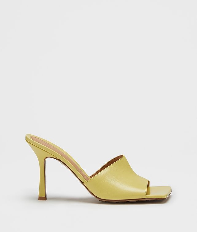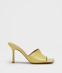 • Leather mules with an elongated square sole • Leather covered stiletto heel • Slip on • Nappa leather lining • Rubber-injected leather outsole DETAILS Composition: 100% Lambskin Color: Pear Heel: 9 cm / 3.5" Made in Italy