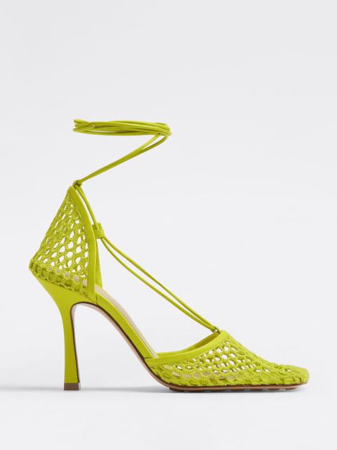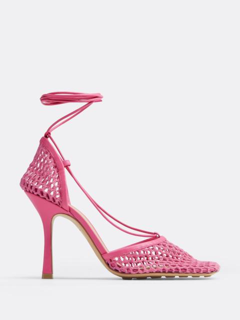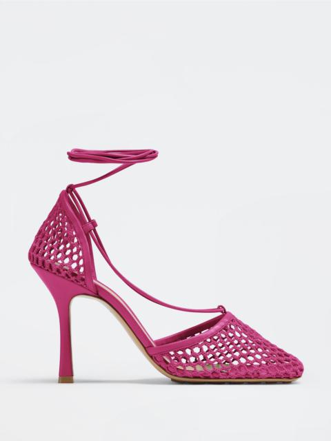 Mesh and leather sandals. Product details • Mesh and leather sandals Material: 100% Lambskin • Unlined • Color: Toile • Rubber-injected leather outsole • Heel: 9 cm | 3.5" Made in: Italy
