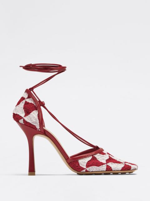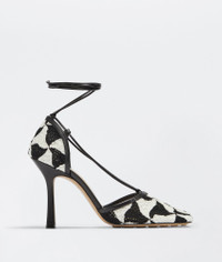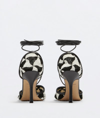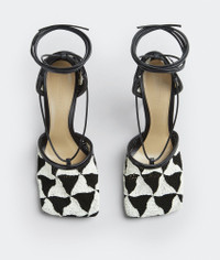 • Hand-crocheted Wavy Triangle sandals Material: 65% Cotton, 35% Polyamide • Unlined • Color: String/Black • Rubber-injected leather outsole • Heel: 9 cm | 3.5" Made in: italy