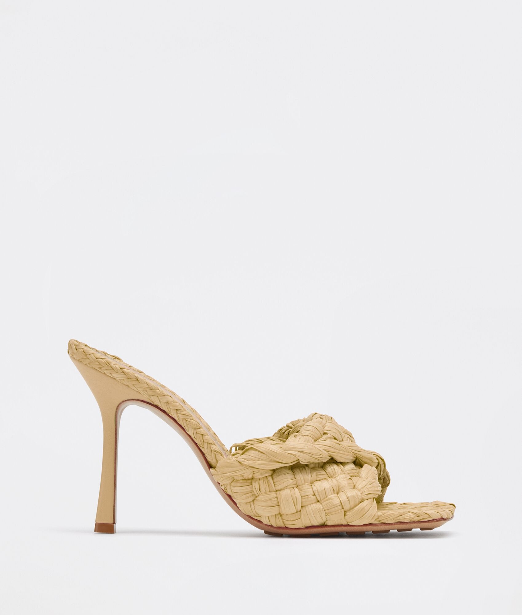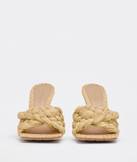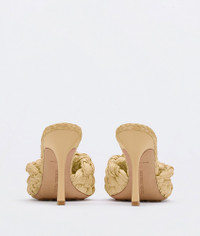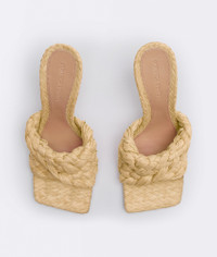 • Twisted Intreccio raffia mules Material: 100% Viscose • Unlined • Color: Macadamia • Rubber-injected leather outsole • Heel: 9 cm | 3.5" Made in: italy