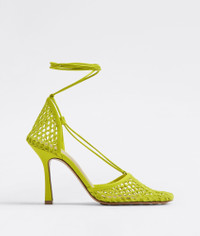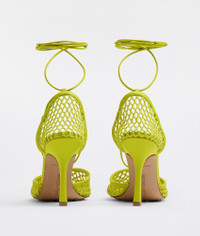 • Mesh and leather sandals Material: 100% Lambskin • Unlined • Color: Kiwi • Rubber-injected leather outsole • Heel: 9 cm | 3.5" Made in: Italy