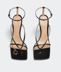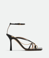 • Leather sandals • Detachable chain with toe ring embellishment Material: 100% Lambskin • Lining: Lambskin • Color: Black • Hardware: Gold finish • Rubber-injected leather outsole Heel: 9 cm I 3.5" Made in: Italy