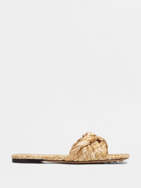 • Twisted Intreccio raffia flat sandals Material: 100% Viscose • Unlined • Color: Blossom • Rubber-injected leather outsole Made in: italy