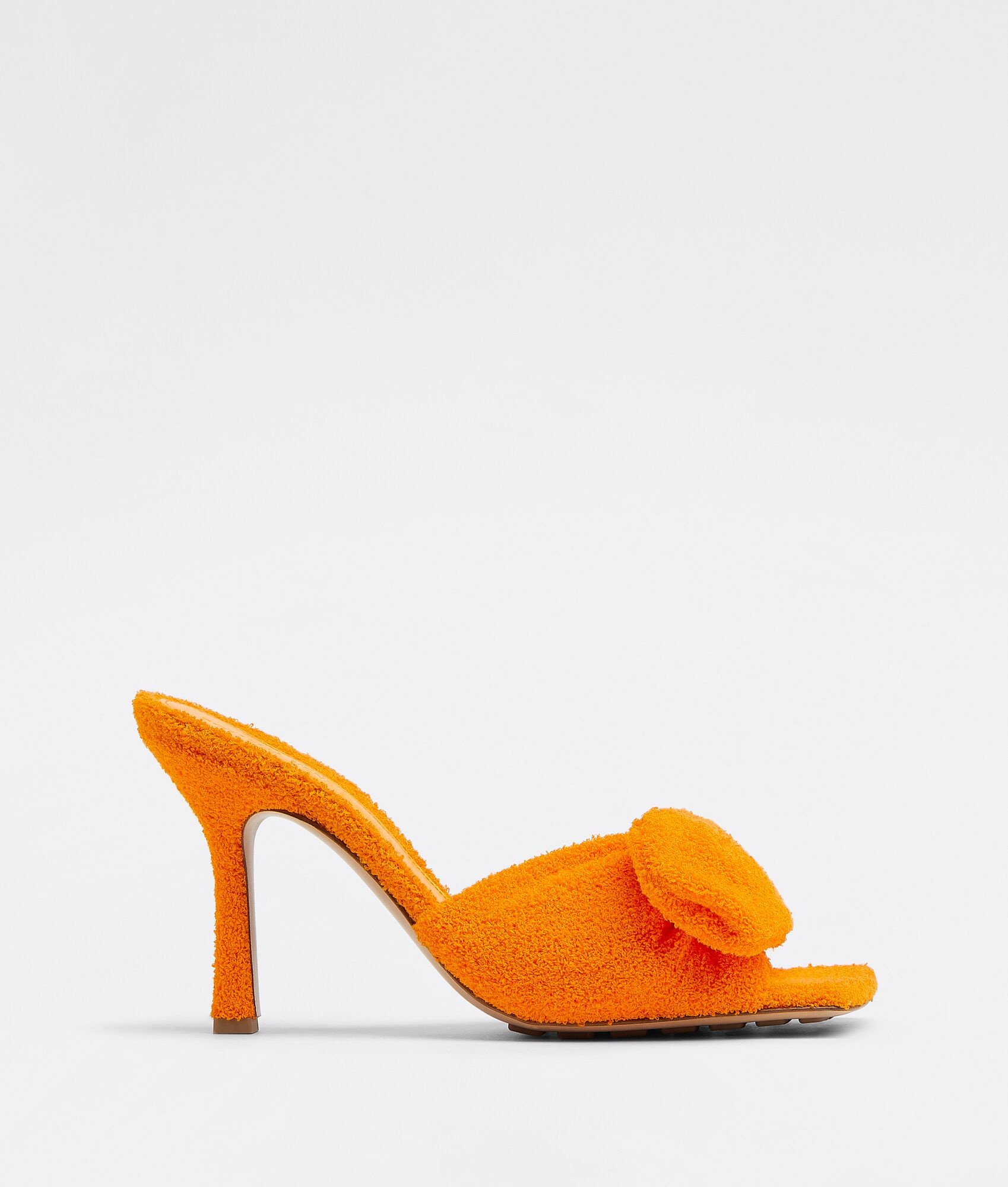 • Terry mules Material: 80% Viscose, 10% Polyester, 10% Polyamide • Unlined • Color: Tangerine • Rubber-injected leather outsole • Heel: 9 cm | 3.5" Made in: italy