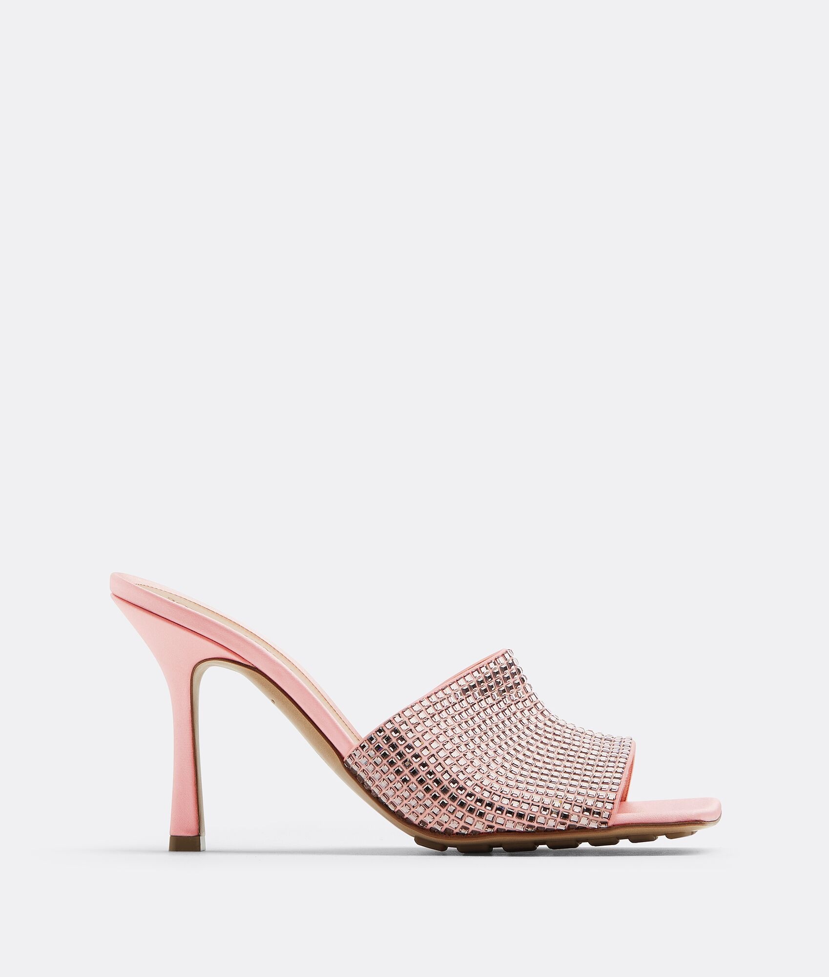 • Strass-embellished silk mules Material: 100% Silk • Lining: Lambskin • Color: Camellia • Rubber-injected leather outsole Heel: 9 cm I 3.5" Made in: Italy