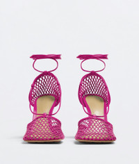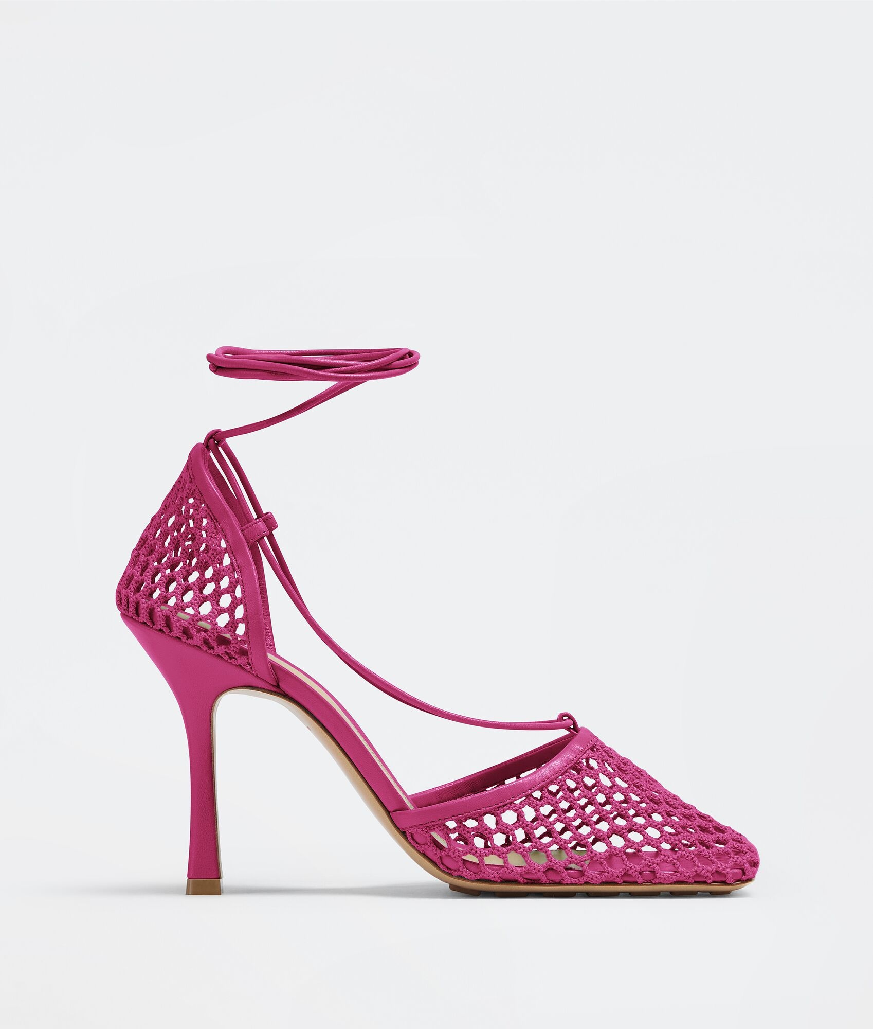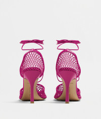 • Mesh and leather sandals Material: 100% Lambskin • Unlined • Color: Hollyhock • Rubber-injected leather outsole • Heel: 9 cm | 3.5" Made in: Italy