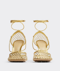 Metallized mesh and leather sandals. Product Details - Metallized mesh and leather sandals - Material: Cotton, Polyester - Unlined - Color: Gold - Rubber-injected leather outsole - Heel: 9 cm | 3.5 " - Made in: Italy - Product code: 651388V1BT18265