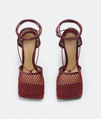 • Mesh and leather sandals Material: 100% Lambskin • Unlined • Color: Cherry • Rubber-injected leather outsole Heel: 9 cm | 3.5" Made in: Italy