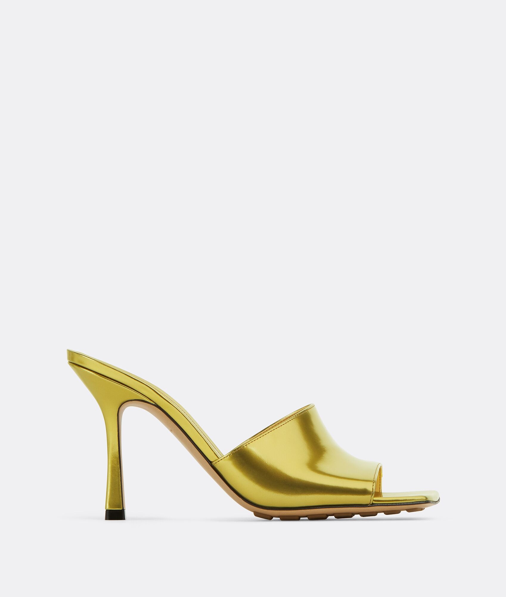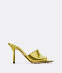 • Laminated leather mules Material: 100% Calfskin • Lining: Lambskin • Color: Gold • Rubber-injected leather outsole • Heel: 9 cm I 3.5" Made in: Italy