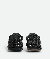 • Hand-twisted tubular leather mules Material: 100% Lambskin • Unlined • Color: Black • Bio-based rubber-injected and biodegradable leather outsole • Heel: 9 cm | 3.5" Made in: Italy