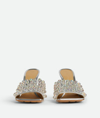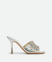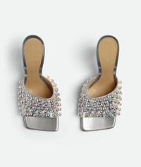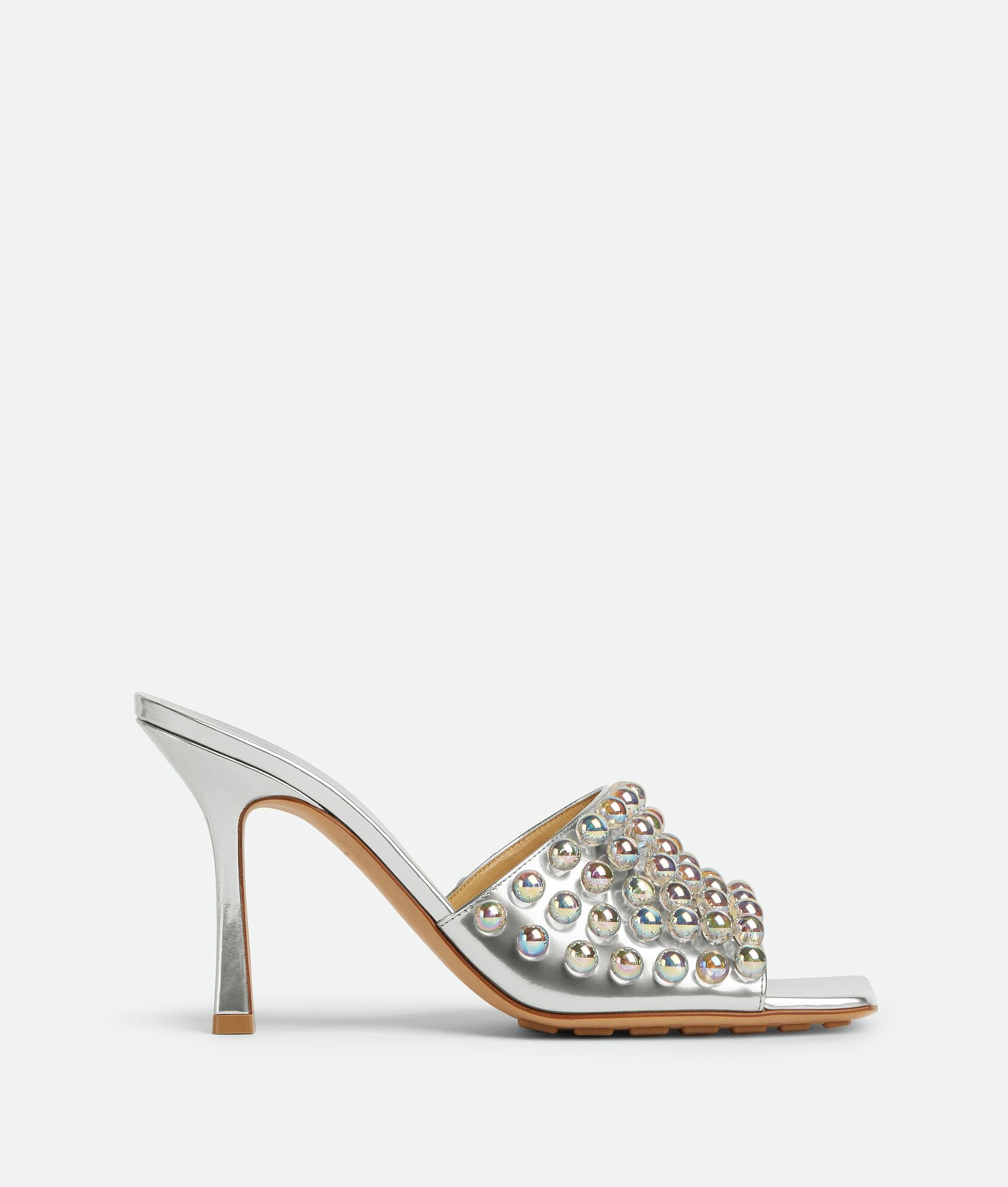 • Sphere-embellished laminated leather mules Material: 100% Calfskin • Lining: Lambskin • Color: Silver • Bio-based rubber-injected and biodegradable leather outsole • Heel: 9 cm | 3.5" Made in: Italy