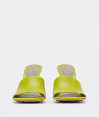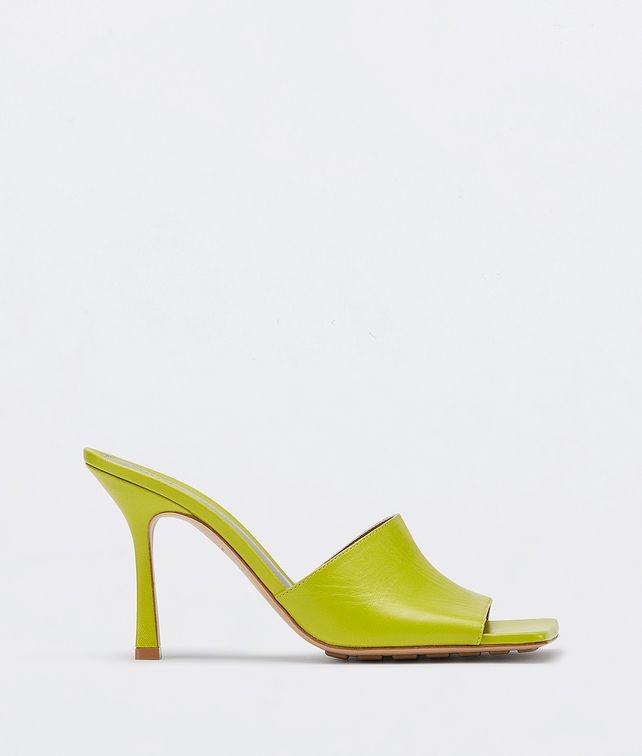 • Leather mules with an elongated square sole • Leather covered stiletto heel • Slip on • Nappa leather lining • Rubber-injected leather outsole DETAILS Composition: 100% Lambskin Color: Kiwi Heel height: 9 cm | 3.5" Made in Italy