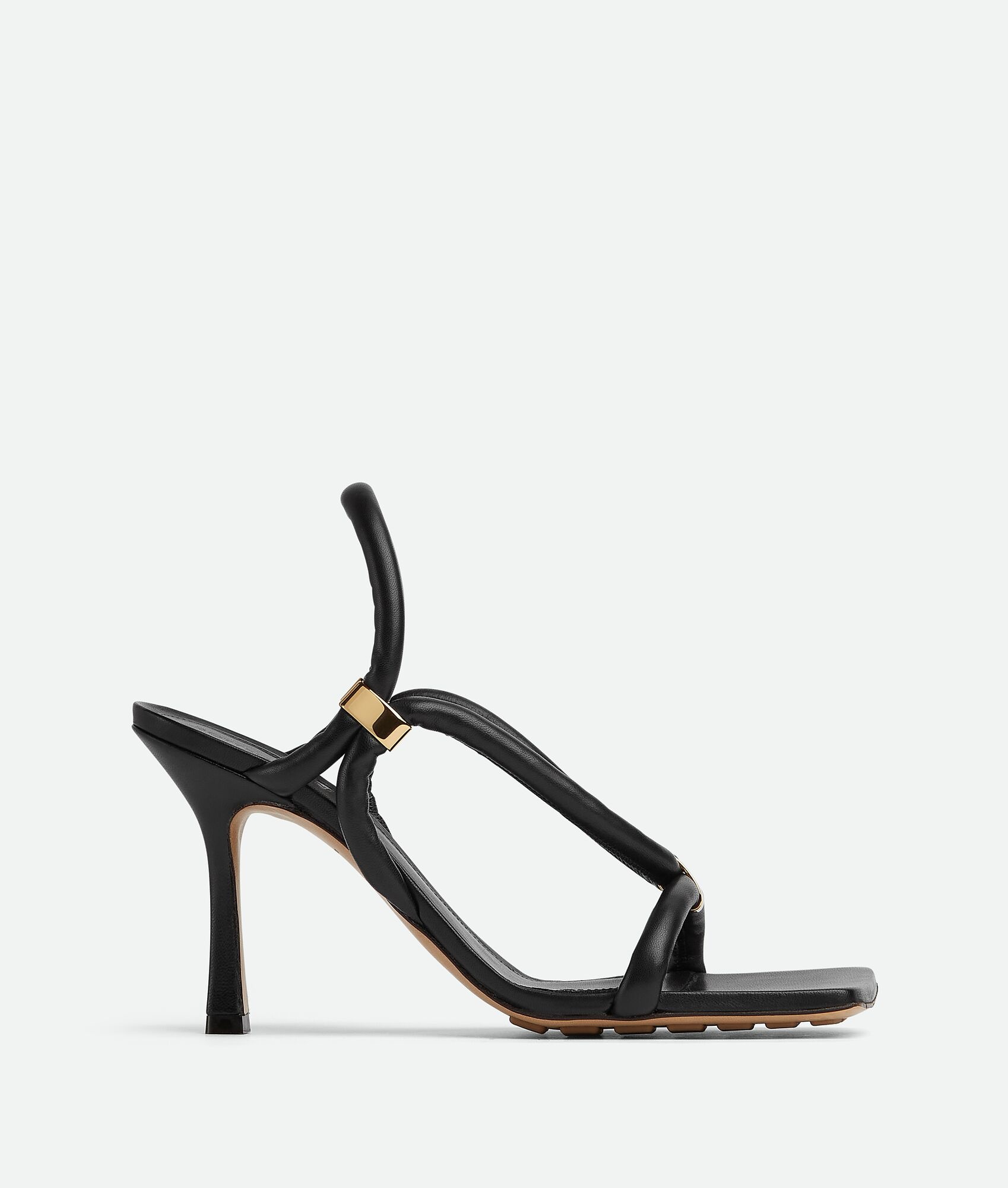 • Tubular leather sandals Material: 100% Lambskin • Unlined • Color: Black • Bio-based rubber-injected and biodegradable leather outsole • Heel: 9 cm | 3.5" Made in: Italy