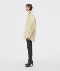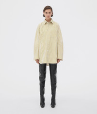 • Striped compact cotton shirt • Curved shape • Button closure • Oversized fit Material: 100% Cotton • Color: Pale Khaki/White Made in: Italy