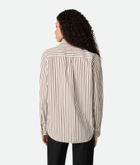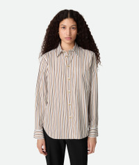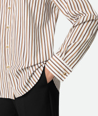 Shirt in bold striped cotton poplin with metal knot detailing. Product Details - Bold striped cotton poplin shirt - Metal knot buttons - Regular fit - Color: Chalk/Toffee/Brown - Made in: Italy - Product code: 838420V5PL09070 Material - Material: 100% Cotton Size & Fit - Model is 179 cm | 5'10" and is wearing a Bottega Veneta size 38