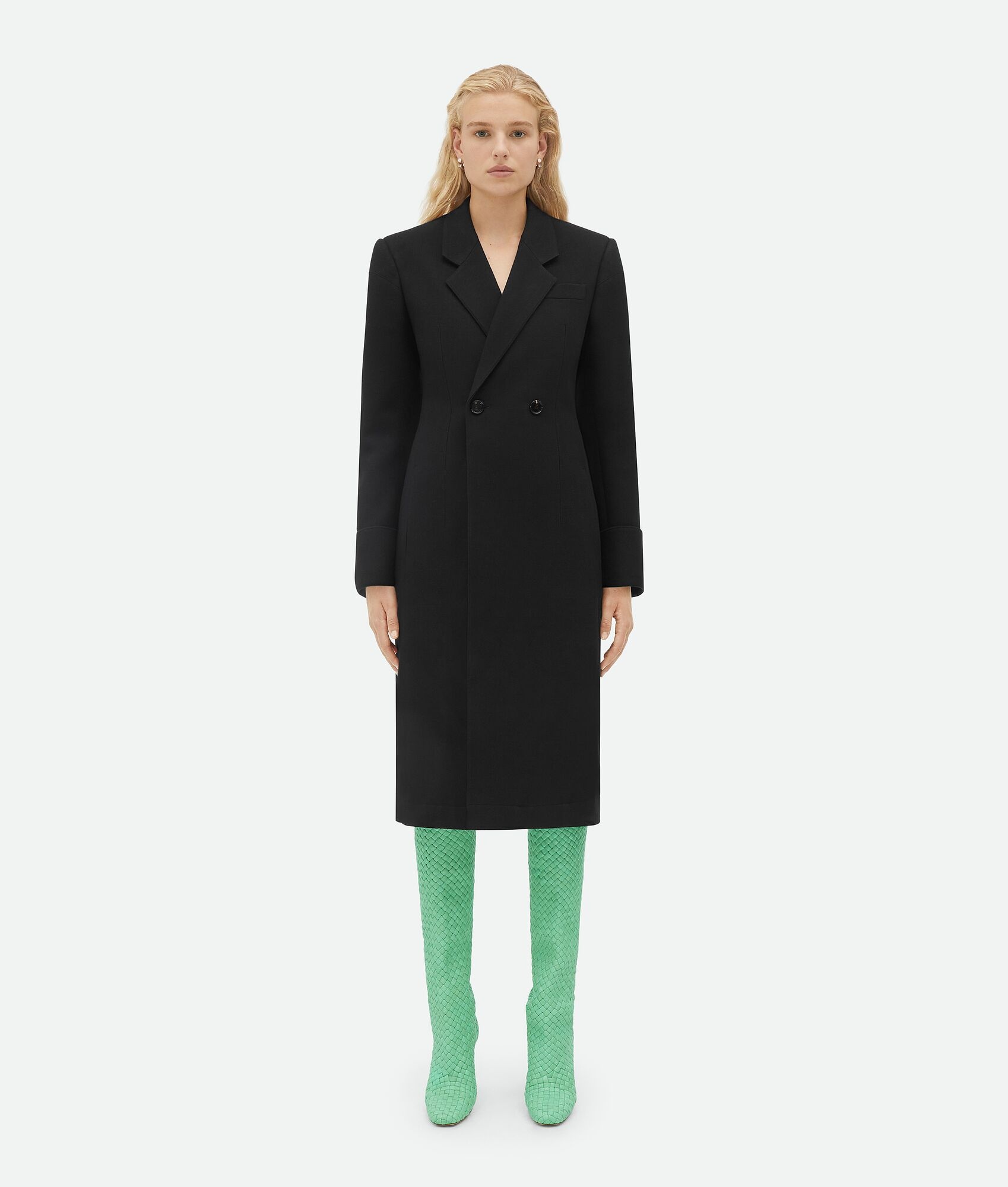 Coat with sleek silhouette tailored from a cotton blend with a lightweight feel. Product details • Structured cotton blend coat • Button closure • Fully lined • Slim fit Material: 35% Cotton, 35% Viscose, 25% Wool, 5% Polyamide • Color: Black Made in: Italy Size & fit • Model is 179 cm | 5'10" and is wearing a Bottega Veneta size 38