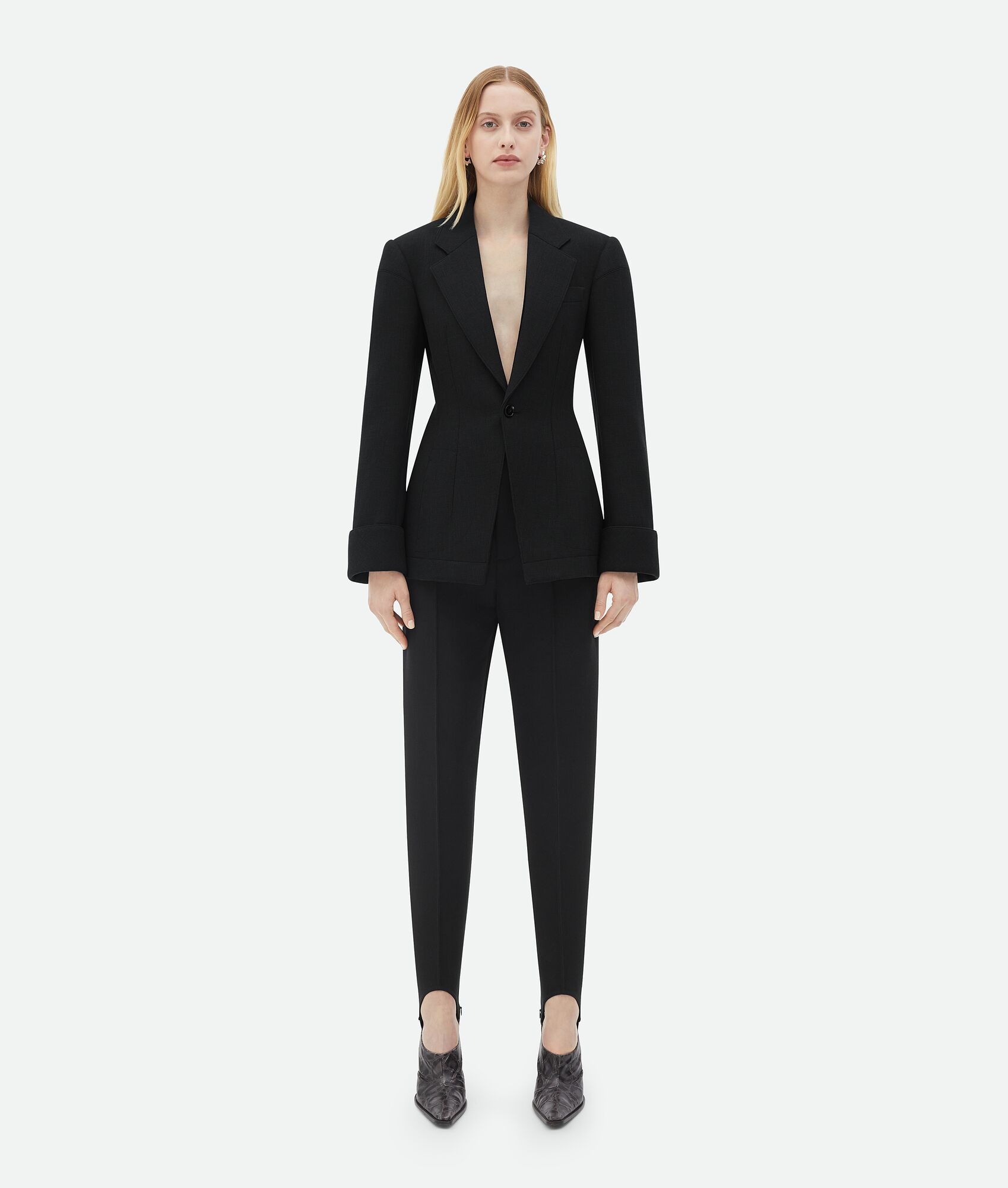 Jacket with sleek silhouette tailored from a cotton blend with a lightweight feel. Product details • Structured cotton blend jacket • Button closure • Half lined • Slim fit Material: 35% Cotton, 35% Viscose, 25% Wool, 5% Polyamide • Color: Black Made in: Italy Size & fit • Model is 180 cm | 5'10" and is wearing a Bottega Veneta size 38