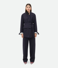 Trousers in subtle striped wool. Product Details - Subtle striped wool trousers - Elasticated waistband - Unlined - Wide leg - Material: 100% Wool - Color: Black/Blue Melange - Made in: Italy - Product code: 792942V36K01155 Size & Fit - Model is 177 cm | 5'9" and is wearing a Bottega Veneta size S